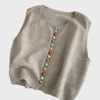 Die Zaria Strickweste mit Farbknöpfen bringt eine frische Wendung in die klassische Strickmode. Mit weichem Stricktextil, einer schmeichelhaften Passform und auffälligen Farbknopf-Akzenten gestaltet, lässt sie sich wunderschön über Blusen, Hemden oder Kleider tragen. Zaria verleiht jedem Outfit Persönlichkeit und Wärme.
