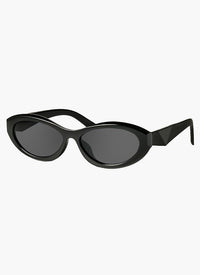 Stylische Sonnenbrille mit einem Acetatrahmen, der mutige Weiblichkeit ausstrahlt. Die gekrümmten und leicht abgeschrägten Kanten verleihen einen eleganten Look, während die dünnen Bügel durch ein drei-dimensionales Element hervorgehoben werden.